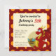 Birthday print invites with illustration of a red dragon guarding a treasure. Illustrated by Maxi Harmony