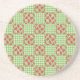 A chic, round Sandstone Coaster, with country-style, mix'n'match patterns of cute red dragons on a green and white check gingham background.