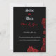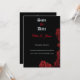 A bold red dragon perches atop a sword, while vibrant red roses add a rich contrast—both set against a deep black background