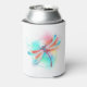 Red, flying, artistically drawn, in bright colours with textured iridescent, blue wings on white background, painted over with splashes of watercolor paint. Bright red dragonfly.