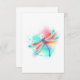 Red, flying, artistically drawn, in bright colours with textured iridescent, blue wings on white background, painted over with splashes of watercolor paint. Bright red dragonfly.