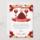Elegant watercolor Blonde Haired princess in Red dress design with red and gold flowers, balloons and gold glitter confetti.