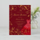 Red Dress Gold Leaves Elegant Sweet 16 Gold Foil Invitation
