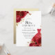 Red Dress & Roses Gold Glitter 80th Birthday Invitation