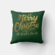 This simple and stylish holiday pillow features a stunning faux gold script typography that says "Merry Christmas" on a black background.