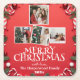 Red Elegant Merry Christmas Family Photo Collage Square Paper Coaster
