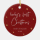 Red Minimalist Elegant Star Calligraphy and Photo Baby's Frist Christmas Ceramic Ornament, Front feature with " Baby's First Christmas" text, gold star and personalised baby name. Back you can personalised baby photo.