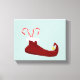 8x10. Whimsical Christmas design. A red elf slipper with 2 red candy canes nestled inside.