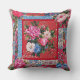 Red Embroidered-look Chinoiserie Peony Patchwork Cushion