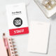Easily personalise this Custom Administrative professional Name Badge without photo, with Scan Qr Code and large business logo. A simple business design in eyecatching red and white colours fully customisable in front and back sizes, sans-serif basic and modern fonts and a professional and clear look, perfect for small business employee, boss, guests. These business id badges supplies are avaiable with lanyard, metal clip or with retractable. No minimum order, but save money and enjoy Zazzle discounts by multiple orders!