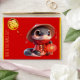 Customisable red greeting money red envelope with cute baby snake wearing Chinese cloths in cartoon style (model n°2) + Fu ideogram for Luck. Golden textured paper (image printed) inside.