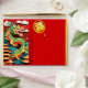 Customisable red greeting money red envelope with origami style papercut of a Dragon + Fu ideogram for Luck. Golden textured paper (image printed) inside.