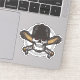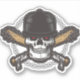 This sticker boasts a striking pirate skull with piercing red eyes that exude an air of mystery and rebellion.