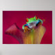 Red eyed tree frog in red flower poster