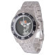 Has heft and feel of expensive stainless steel quartz watches. Good band with safety catch. I removed links, which is easy because engraved arrows show direction to push the linking pins. As always by this seller, the image (a railroad logo) is a perfect reproduction of my emailed image, and is precisely spaced and aligned.