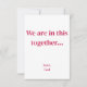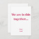 Share God's love and let someone know you are thinking about them. Flat white note card with red print "We are in this together... Love, God". Notecards available in quantities of 10 or more.