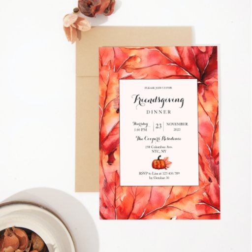 Red Fall Leaves Pumpkin Thanksgiving Invitation