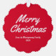 Create your own photo ornament for the holidays with a red and white Merry Christmas greeting on the back.