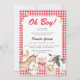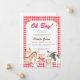 Red gingham background with cute chicks on the frame, high-quality graphics of happy farm animals