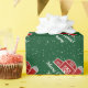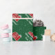 Red farm house in the snow custom Christmas Wrapping Paper. Cute winter Holiday design for friends and family. Personalised gift wrap rolls for men, women and children (boys and girls). Personalizable with name and seasons greeting like Merry Christmas or Happy Holidays. The green background colour is customisable. Stylish script typography. Available as matte and high glossy finish. Personalised gift wrapping supplies for children and adults.