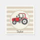 Cool, retro, colourful kid's Red Farm Tractor, country farmer design on tan & off white stripes, striped pattern with vintage feel. Perfect gift for baby, toddler, kids, children, teens, or adults! Personalised the design by adding a child's name or custom text. Visit our store, Birthday Party House, for more great customisable boy and girl products!