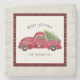 Red Farm Truck Merry Christmas Rustic Wood Tree Stone Coaster