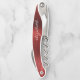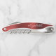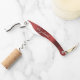 This distinctive personalised corkscrew features a modern red brushed metal background. Customise it with a name in white cursive handwriting-style script.