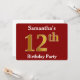 Red, Faux Gold 12th Birthday Party + Custom Name Invitation