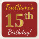 Red, Faux Gold 15th Birthday + Custom Name Square Paper Coaster