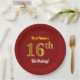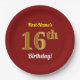 Red, Faux Gold 16th Birthday + Custom Name Paper Plate