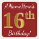 Red, Faux Gold 16th Birthday + Custom Name Sticker