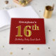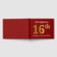 This guest book design features the ordinal number "16th" with a faux gold-like appearance. It also features a customised name, and a red coloured background. It could be used at a party for somebody celebrating their sixteenth birthday. [~Z0000055]