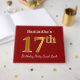 This guest book design features the ordinal number "17th" with a faux gold-like appearance. It also features a customised name, and a red coloured background. It could be used at a party for somebody celebrating their seventeenth birthday. [~Z0000055]