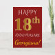 Red, Faux Gold 18th Wedding Anniversary + Name Card