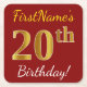 Red, Faux Gold 20th Birthday + Custom Name Square Paper Coaster