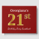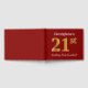 This guest book design features the ordinal number "21st" with a faux/imitation gold-like appearance. It also features a personalised name, and a red coloured background. It could be used at a party for somebody celebrating their twenty first birthday. [~Z0000055]