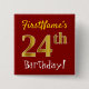 Red, Faux Gold 24th Birthday, With Custom Name 15 Cm Square Badge