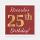 Red, Faux Gold 25th Birthday + Custom Name Napkin