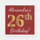 Red, Faux Gold 26th Birthday + Custom Name Napkin
