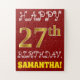 This fun and simple birthday puzzle design features the message "HAPPY 27th BIRTHDAY", with the "27th" having a faux/imitation gold-like colour appearance. It also features a custom name, and a red coloured background. It could be a fun and special way to deliver a personalised birthday greeting to somebody who is celebrating their twenty seventh birthday. [~Z0000200]