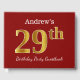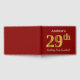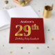This guest book design features the ordinal number "29th" with a faux/imitation gold-like appearance. It also features a personalised name, and a red coloured background. It could be used at a party for somebody celebrating their twenty ninth birthday. [~Z0000055]