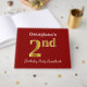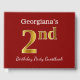 This guest book design features the ordinal number "2nd" with a faux gold-like appearance. It also features a customised name, and a red coloured background. It could be used at a party for somebody celebrating their second birthday. [~Z0000055]