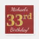 Red, Faux Gold 33rd Birthday + Custom Name Napkin