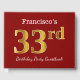 This guest book design features the ordinal number "33rd" with a faux/imitation gold-like appearance. It also features a personalised name, and a red coloured background. It could be used at a party for somebody celebrating their thirty third birthday. [~Z0000055]