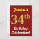 Red, Faux Gold 34th Birthday Celebration + Name Invitation