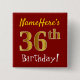 Red, Faux Gold 36th Birthday, With Custom Name 15 Cm Square Badge