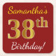Red, Faux Gold 38th Birthday + Custom Name Square Paper Coaster
