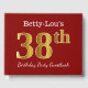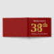 This guest book design features the ordinal number "38th" with a faux/imitation gold-like appearance. It also features a personalised name, and a red coloured background. It could be used at a party for somebody celebrating their thirty eighth birthday. [~Z0000055]