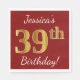 Red, Faux Gold 39th Birthday + Custom Name Napkin