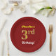 Red, Faux Gold 3rd Birthday + Custom Name Paper Plate
